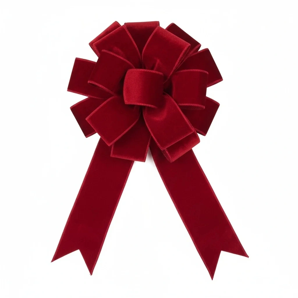 Our red velvet wired ribbon combines a luxurious, glossy crushed‑velvet face with a matching high‑density satin back, both crafted from durable polyester for long‑lasting presentation. The iron wired edges on both sides make shaping bows, loops, and accents effortless, while the continuous 10‑yard roll without splices supports clean, uninterrupted production. At 2.5 inches wide, this ribbon is a versatile choice for Christmas tree decoration, wreath making, gift wrapping, floral design, and refined home décor. Each roll is individually packed for easy handling and storage. As a wholesale manufacturer/supplier, we support consistent quality and reliable fulfillment for seasonal promotions and retail programs. Contact us for flexible MOQs, customized packaging, and scheduling aligned to your peak demand.