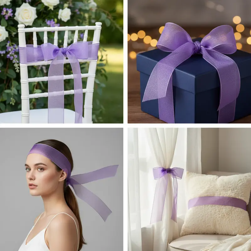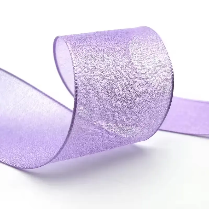 A: Our ribbon stands out due to its vibrant purple color, high-quality organza material, and delicate transparency, offering a perfect blend of elegance and durability.