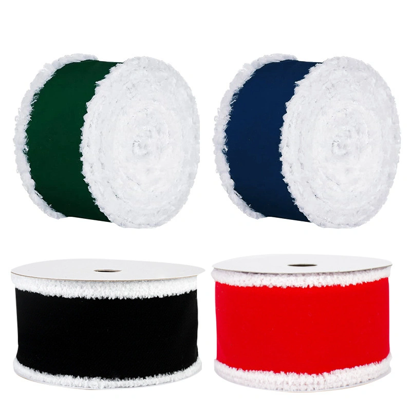 Each ribbon showcases vibrant, fade-resistant colors paired with luxurious white fur-like edging. The versatile color palette allows you to match any holiday theme, from traditional red and green combinations to sophisticated navy and black arrangements.