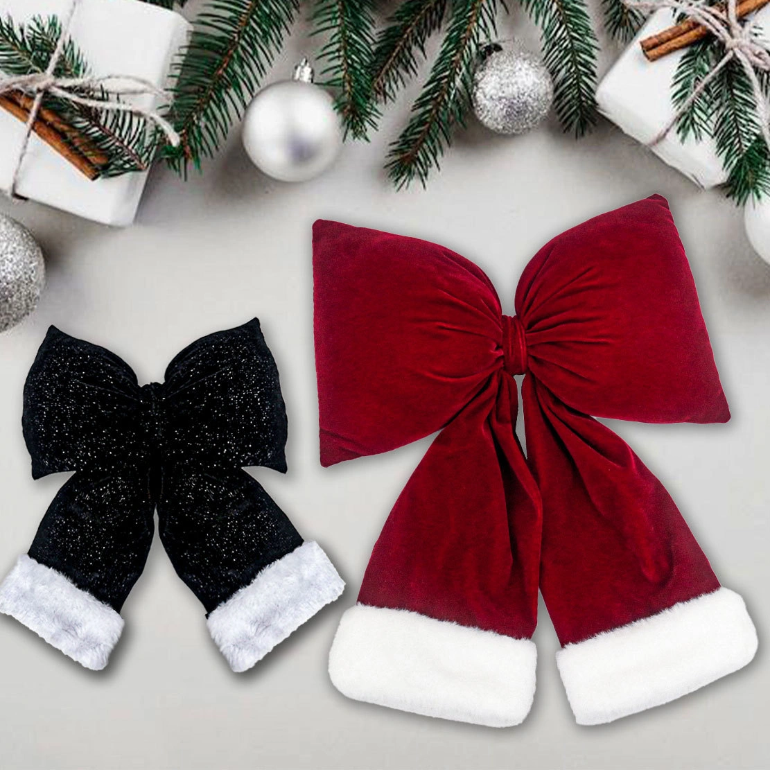 Product Name: Premium Velvet Santa Bow with Faux Fur Trim